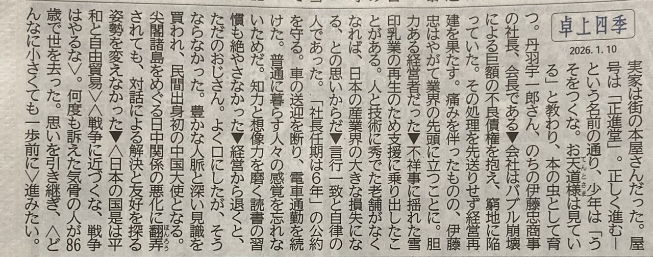 挿絵タイトル『丹羽宇一郎さん逝く』だけど、挿絵はどんな感じ?