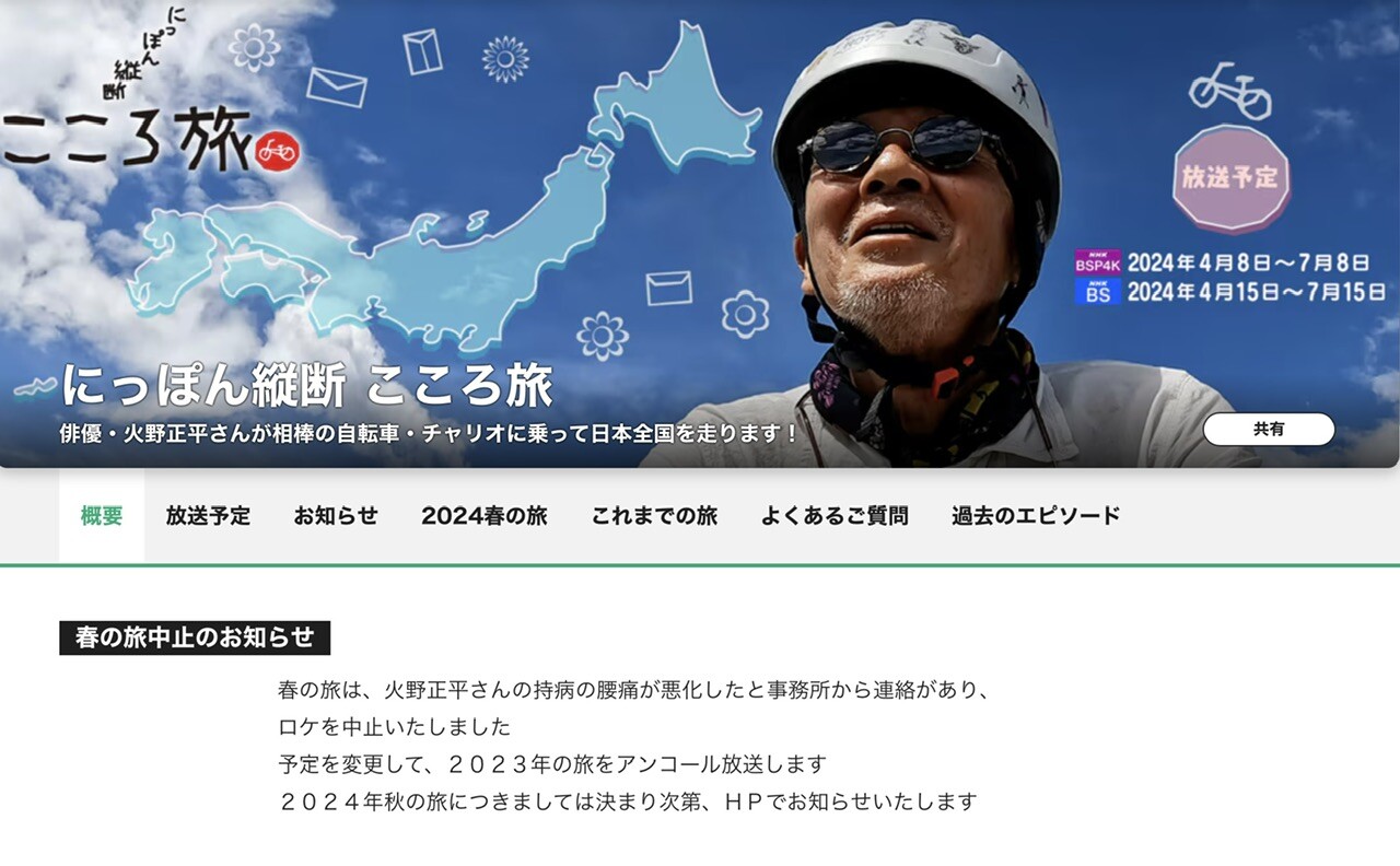 毎日、観ているNHK-BSの『日本縦断 こころ旅』が中止か。