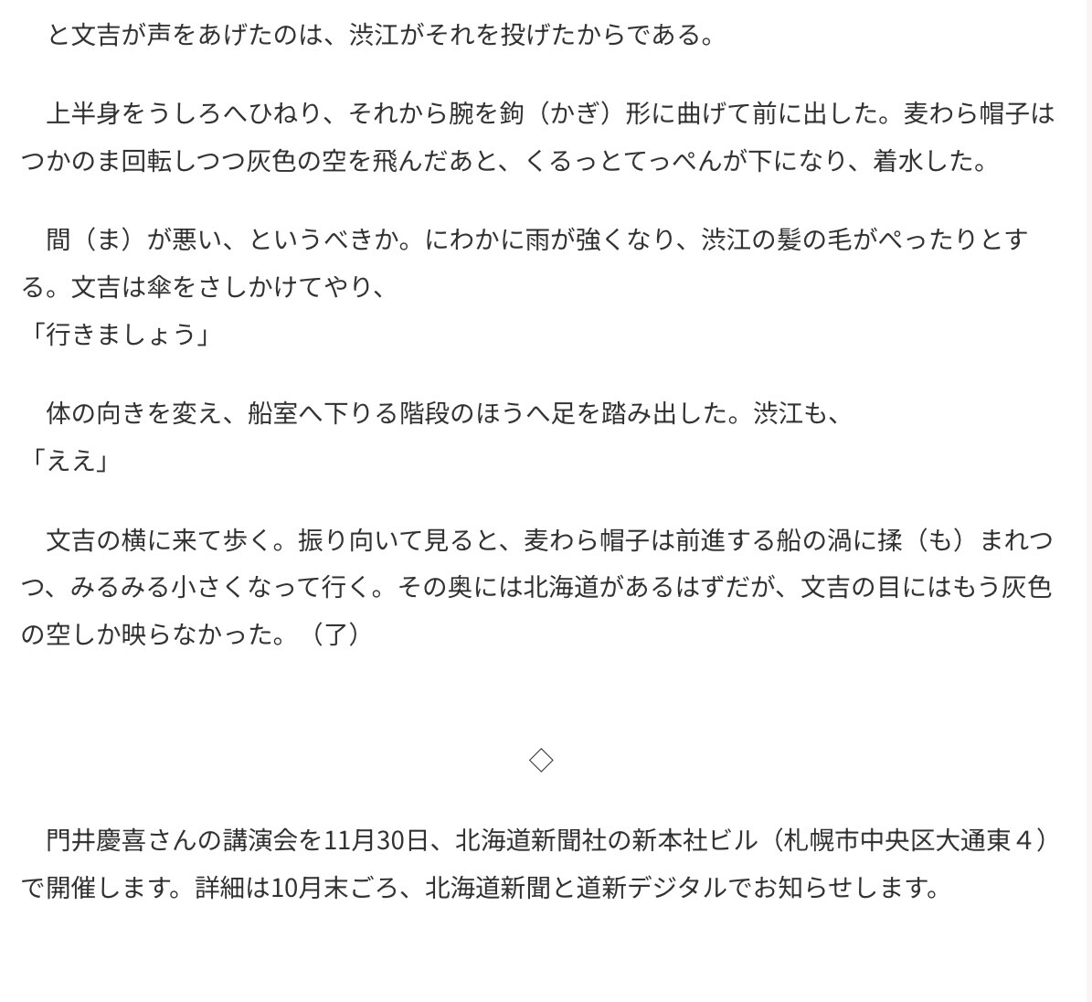 著者の門井慶喜さんの講演会が11/30に道新の新本社ビルで