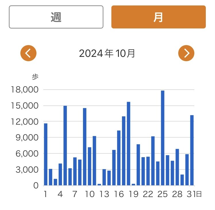 10月からチャリOKで、1日平均徒歩数10000歩が目標、