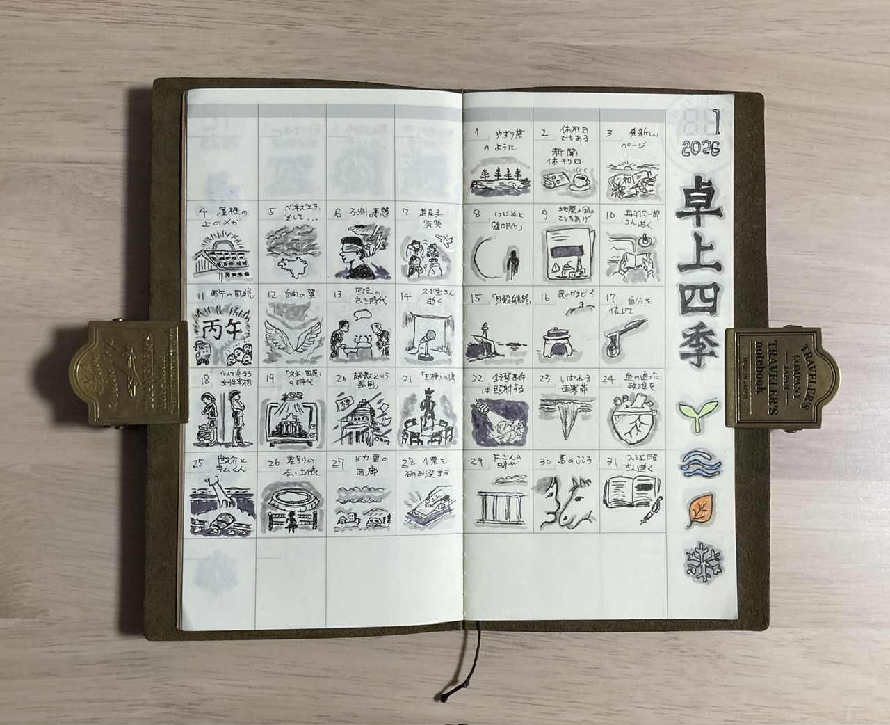その挿絵をTNマンスリーダイアリーのひとマス絵日記風の挿絵日記。