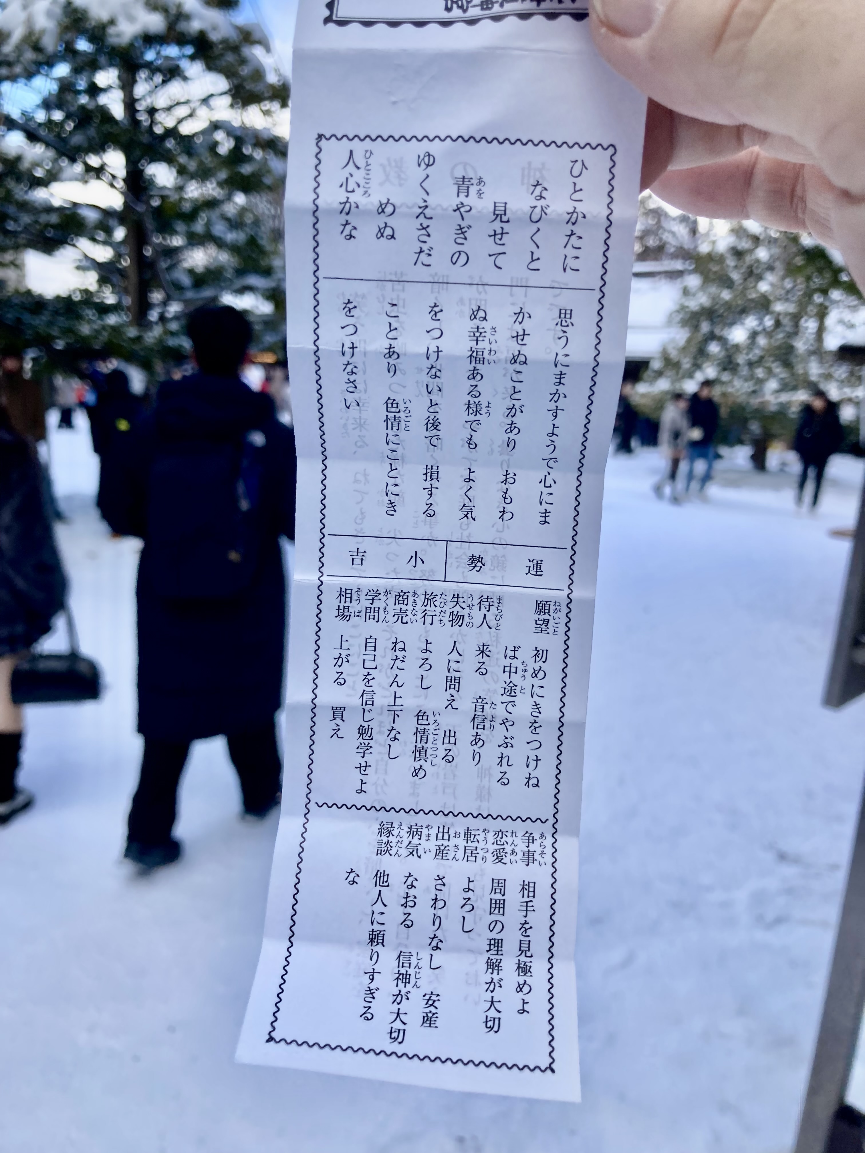 お参りして御神籤は今年は小吉でやんす、病は「なおる」か、