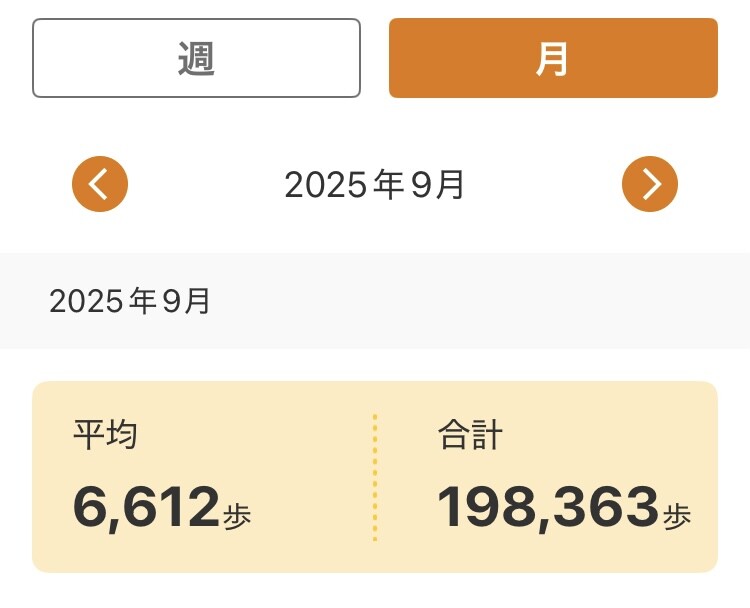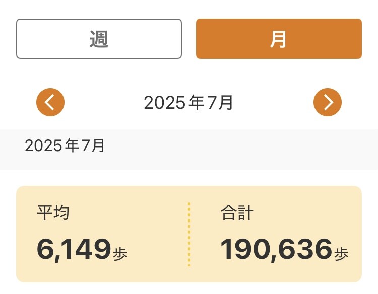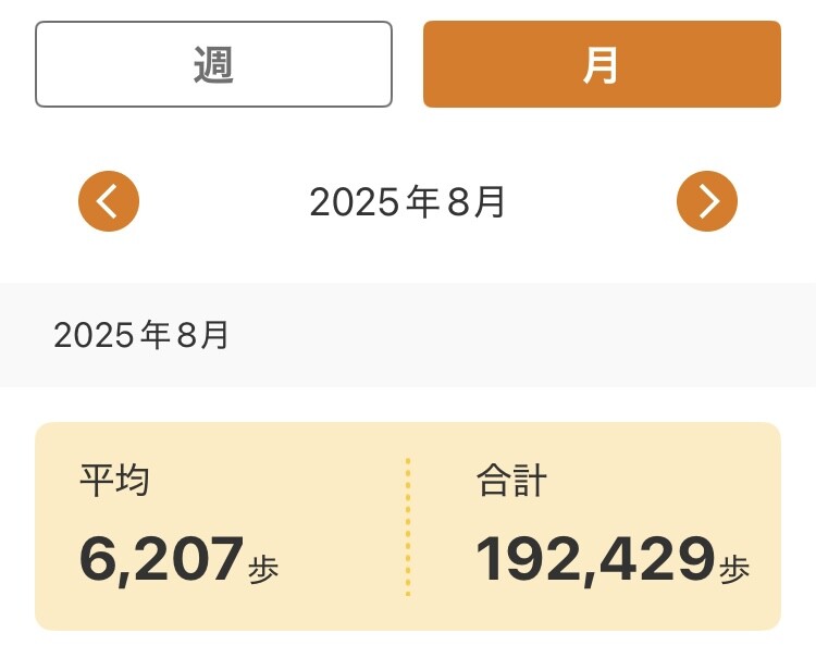 月間平均歩数は6100歩→6200歩に微増、6000歩台はキープしたね。