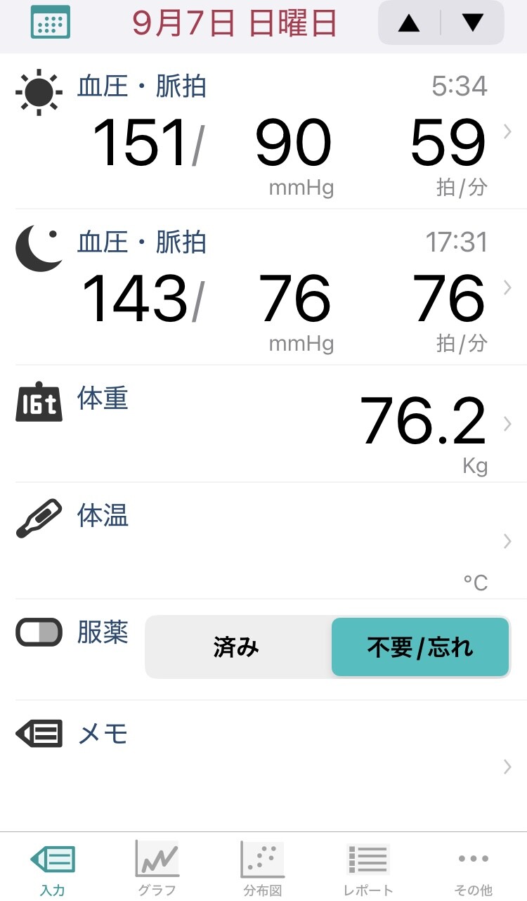毎月7日はオヤジの月命日でオフィシャル計測日、まず血圧は高血圧。