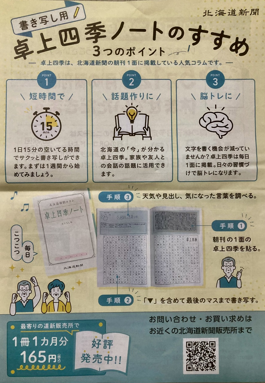 北海道新聞のコラムの<卓上四季>を毎日書く、、いいかも?