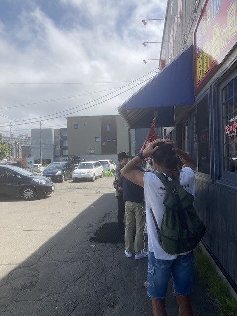 30℃の真夏日の暑さの中、列が出来てるよ、ここも満席ってか。