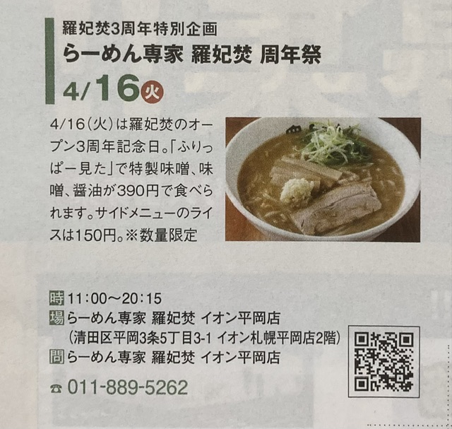 白樺山荘羊ヶ丘店の開店16周年祭で料金が950円→500円。