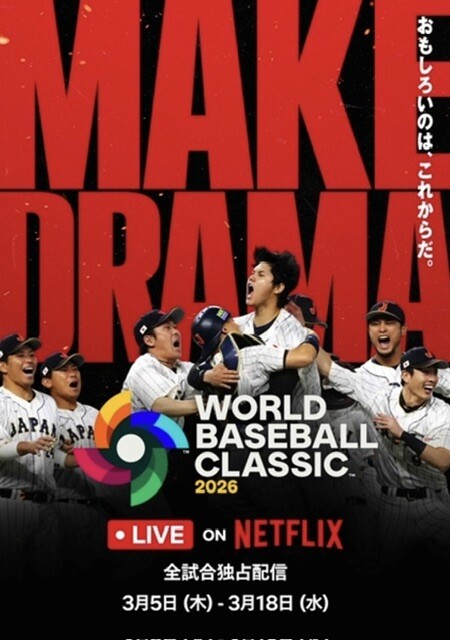 Netflixでは野球の世界大会「2026 ワールドベースボールクラシック(WBC)」の全試合ライブ配信を予定しており、本キャンペーンもそれにあわせた取り組みだ。