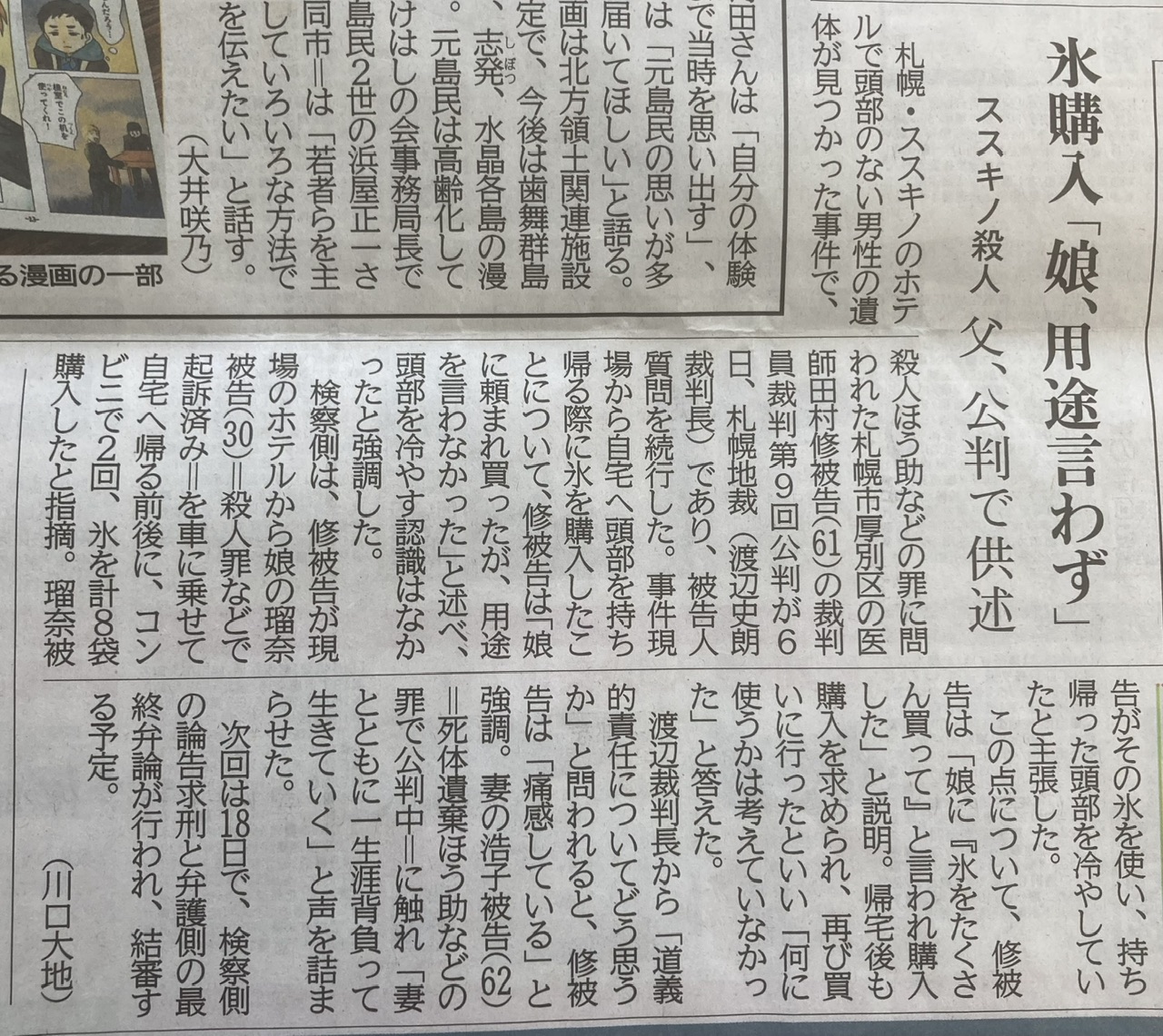 の裁判員裁判の様子が朝刊の記事になってるね。