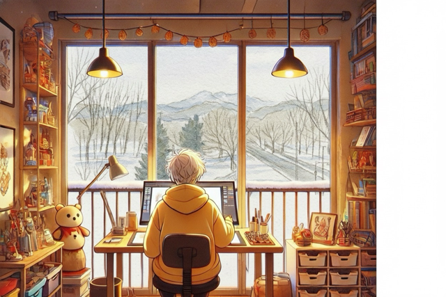 Jinのアトリエも数えて24回目で外も雪景色に変わり、